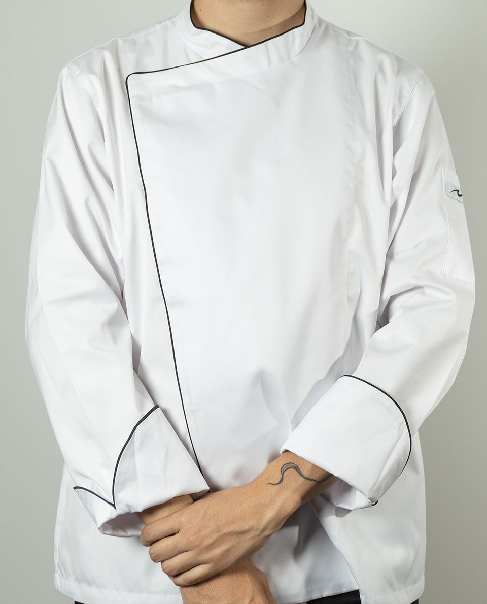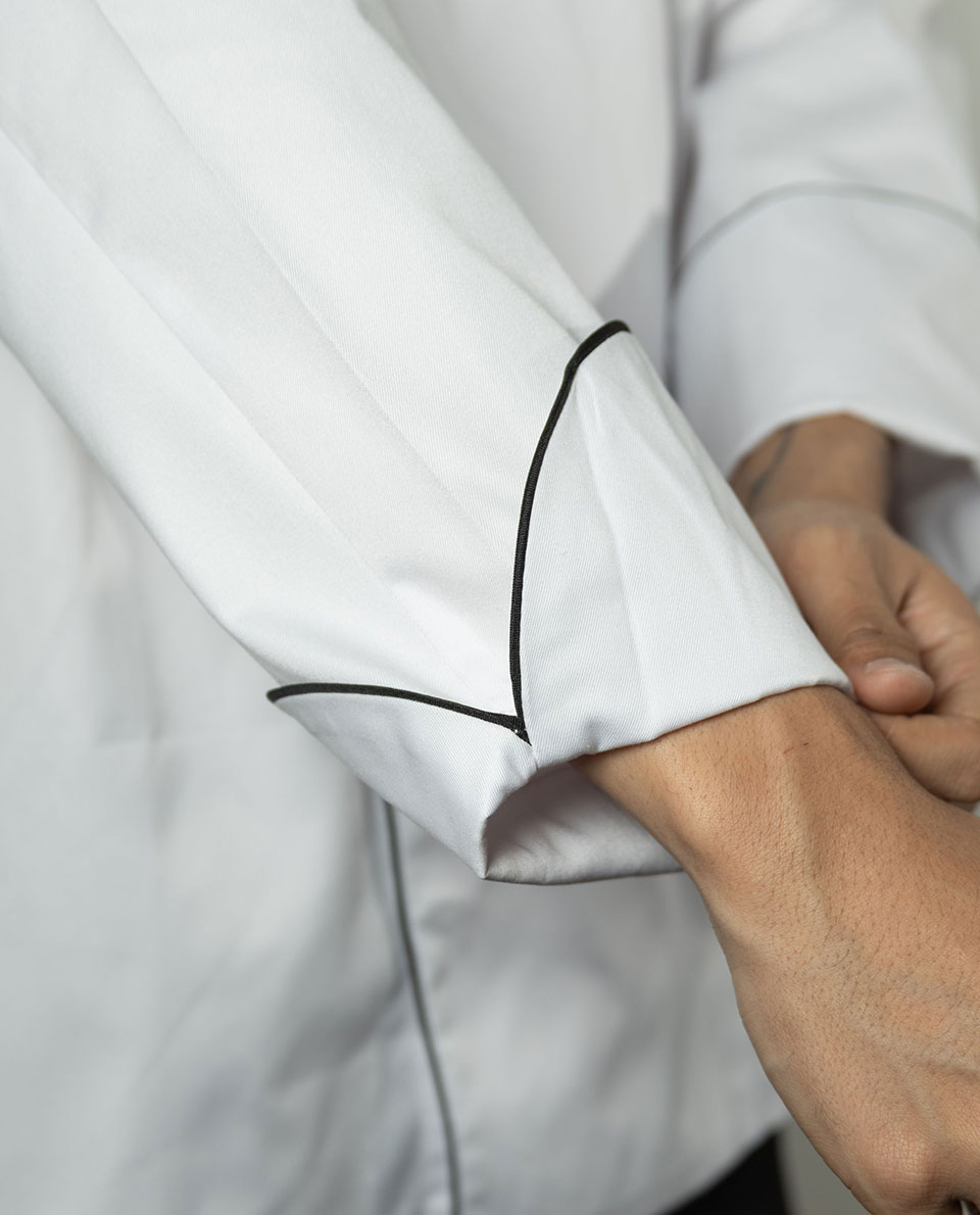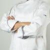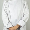 Chaqueta # 37 para dama caballero blanca manga larga, con embone negro en cuello puños y parte delantera