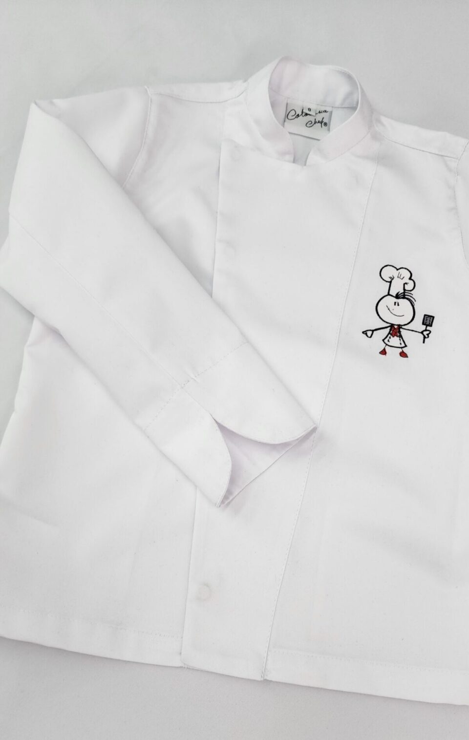 Chaqueta clásica blanca manga larga, bordado en pecho,