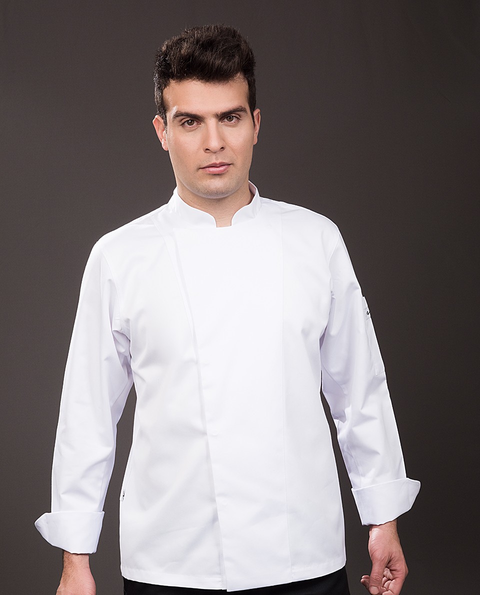 Chaqueta basica blanca manga larga, tela con larga durabilidad, ligera y suave al tacto composición 65% poliéster 35% algodón