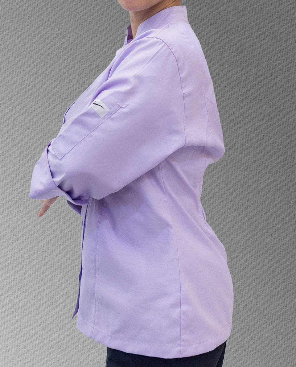 Chaqueta Dama color lila, manga 3/4, bordado en espalda, tela con larga durabilidad, ligera y suave al tacto composición 65% poliéster 35% algodón