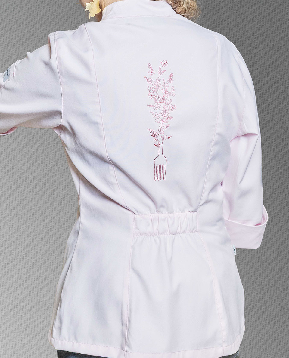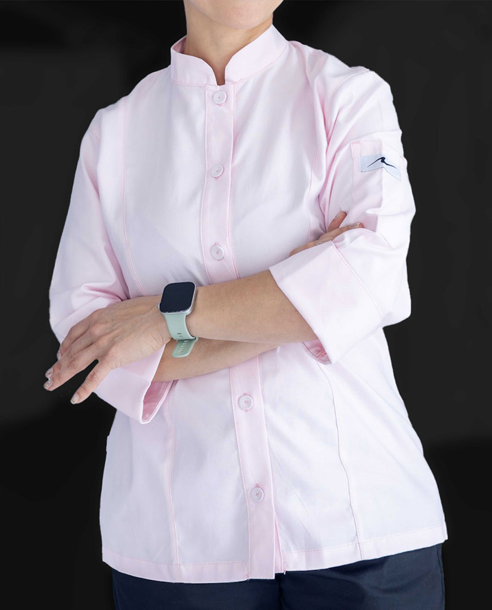 Chaqueta Dama color rosa, manga 3/4, bordado en espalda, tela con larga durabilidad, ligera y suave al tacto composición 65% poliéster 35% algodón