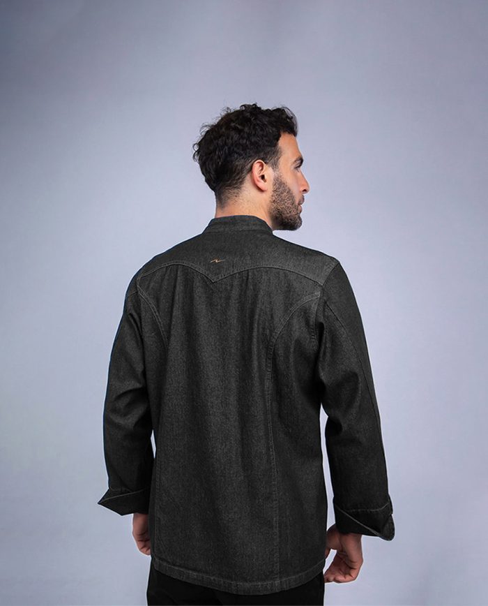 Chaqueta clásica manga larga en jean negro, prelavada, tela con larga durabilidad y suave al tacto, composición 100% algodón, color igual o similar a la imagen
