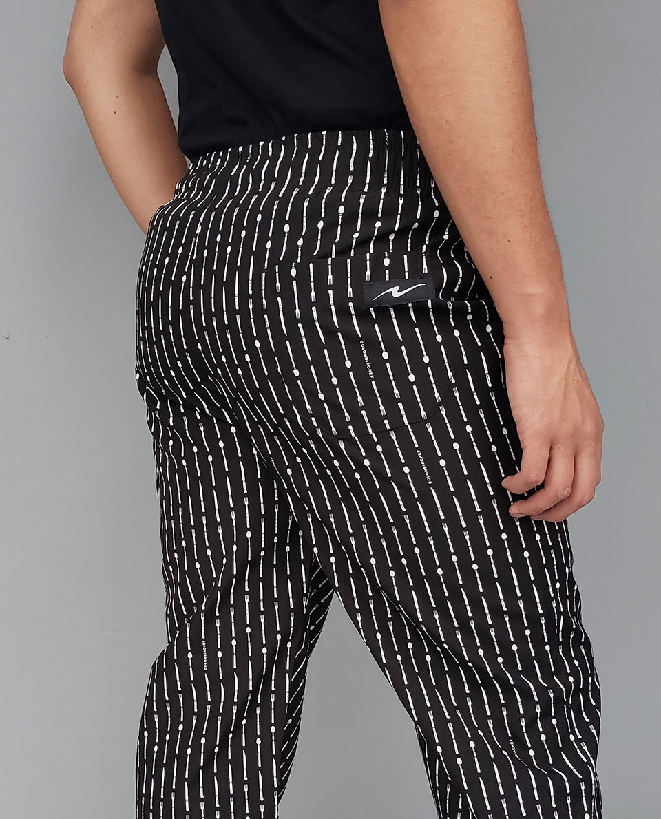 Pantalón resortado estampado con cubiertos, con bolsillos internos, composición 100% poliéster