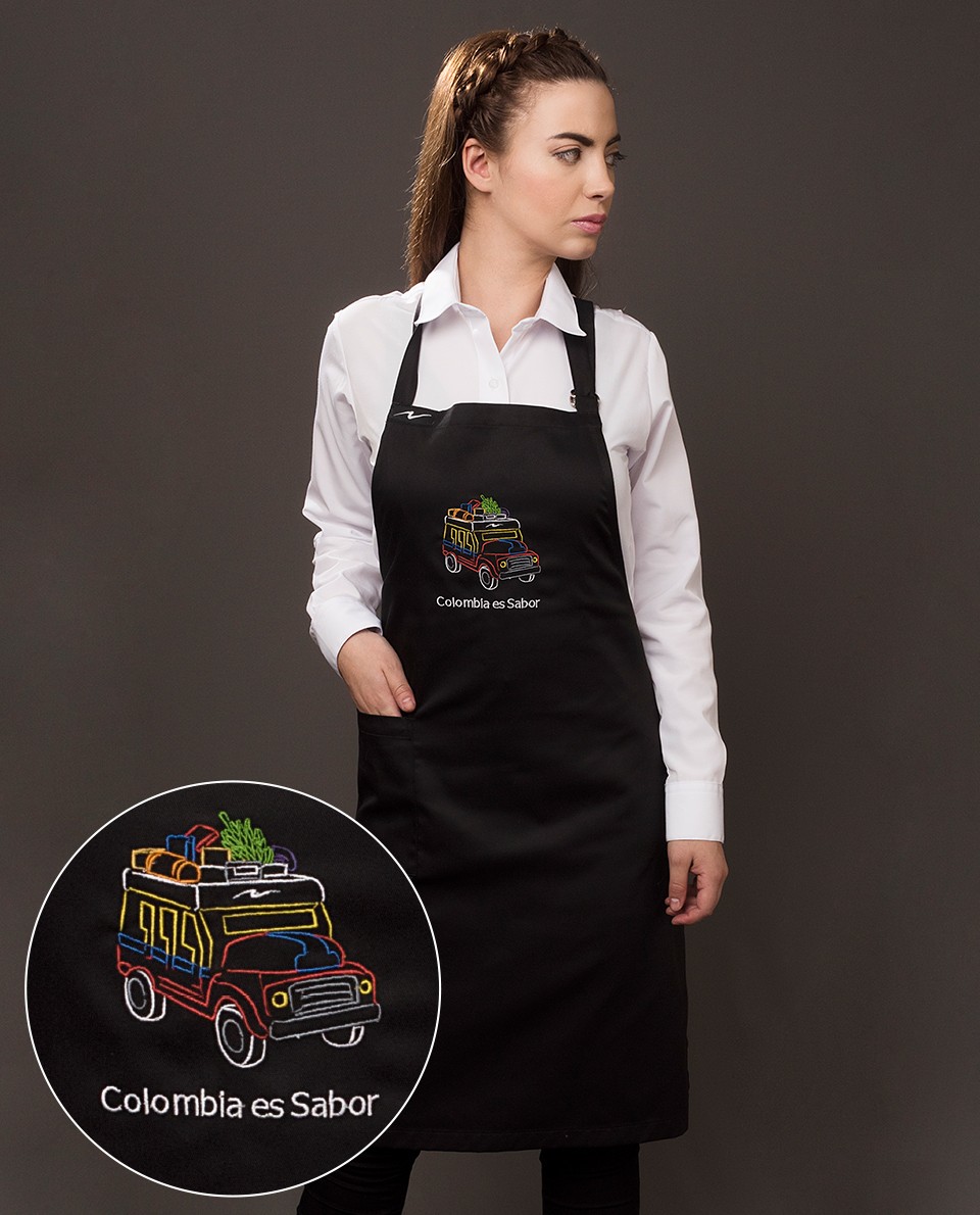 Peto con bolsillo, tela con larga durabilidad, ligera y suave al tacto, color negro con bordado. Composición 65% poliéster 35% algodón