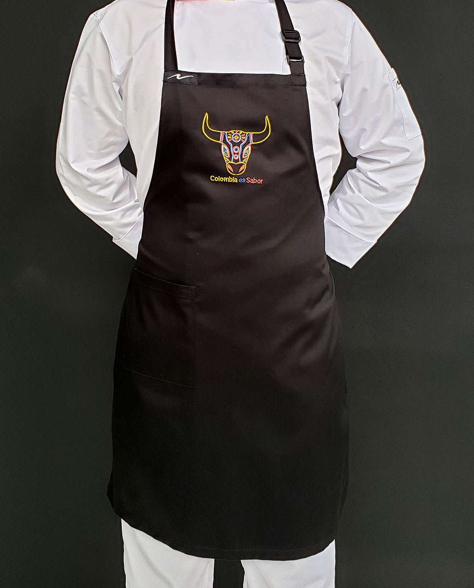Peto con bolsillo, tela con larga durabilidad, ligera y suave al tacto, color negro con bordado. Composición 65% poliéster 35% algodón