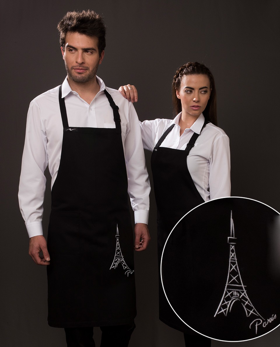 Peto con bolsillo, tela con larga durabilidad, ligera y suave al tacto, color negro con bordado. Composición 65% poliéster 35% algodón