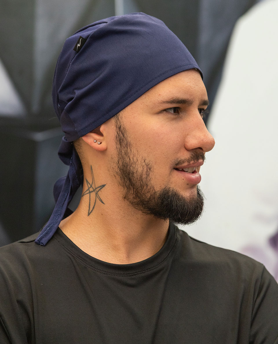 Gorro pirata de amarrar, en gabardina negra suave al tacto