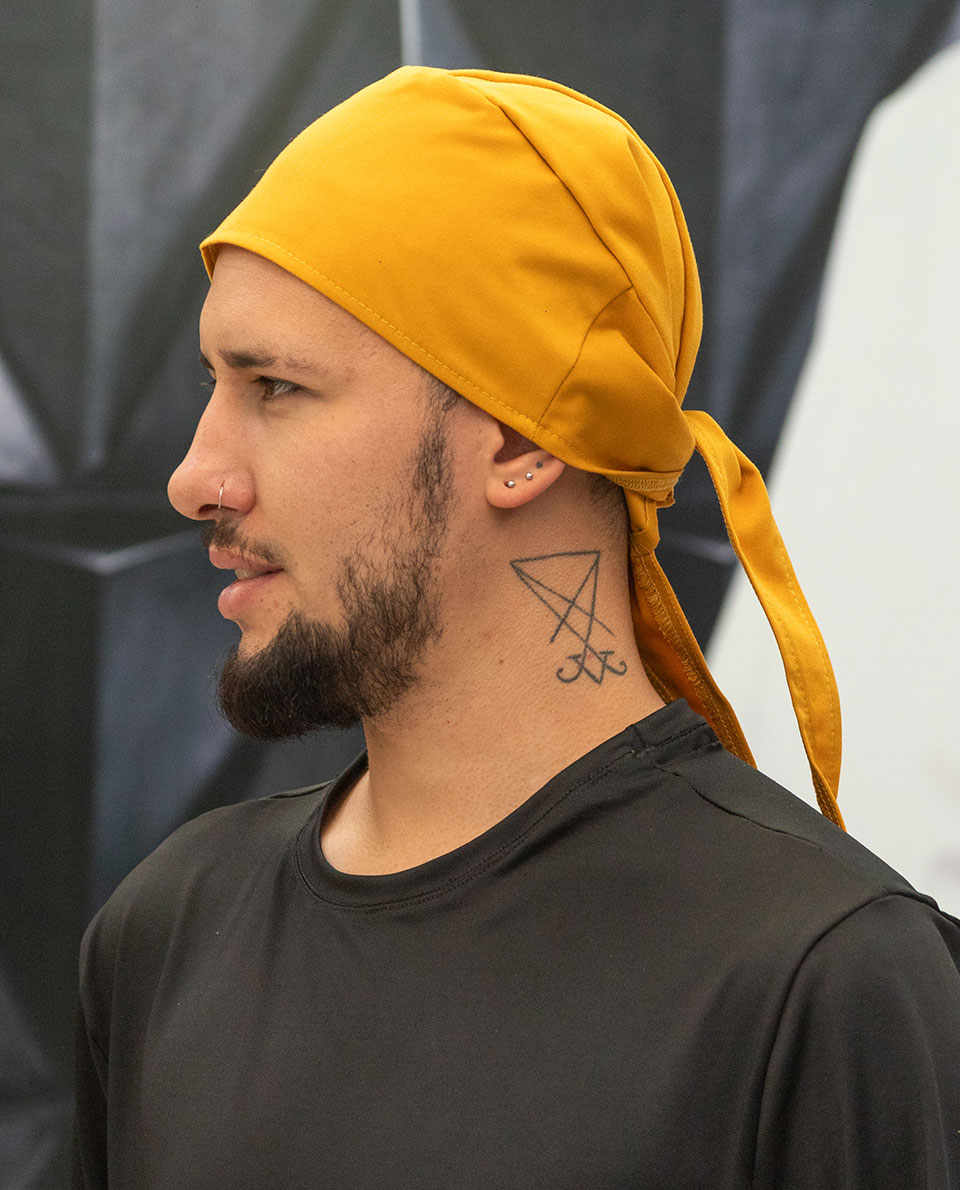 Gorro pirata de amarrar, en gabardina negra suave al tacto