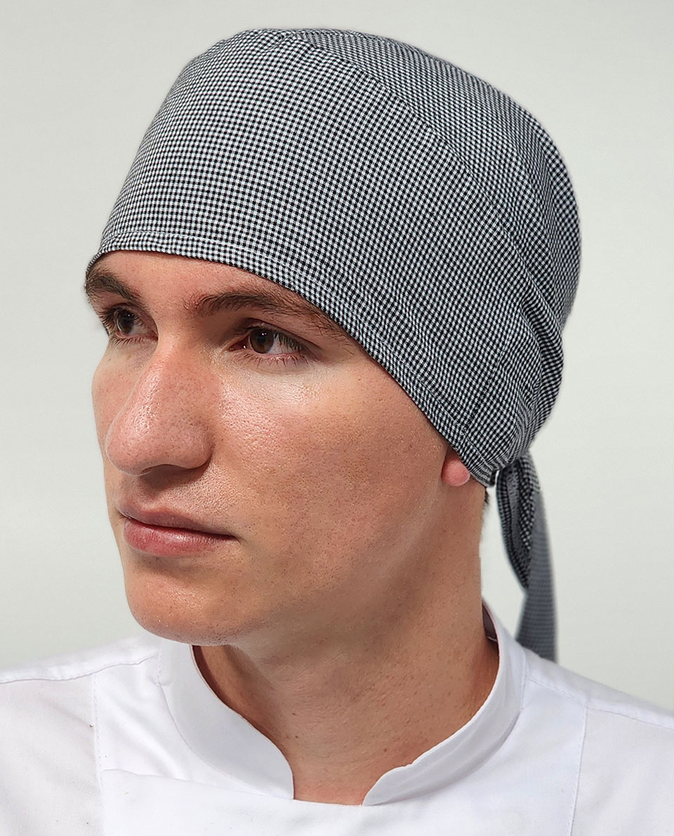 Gorro pirata de amarrar, en gallineto poliester blanco negro, suave al tacto